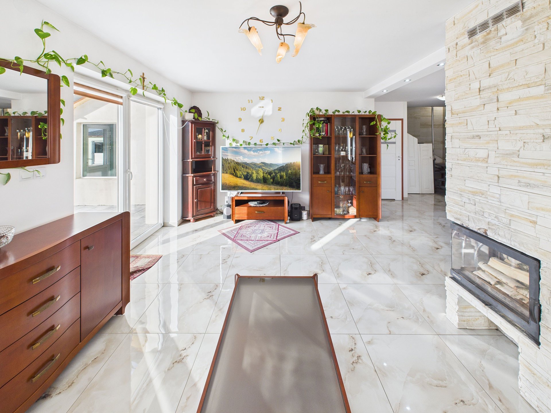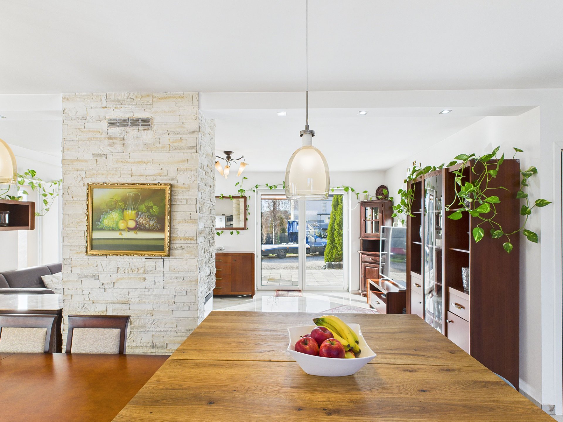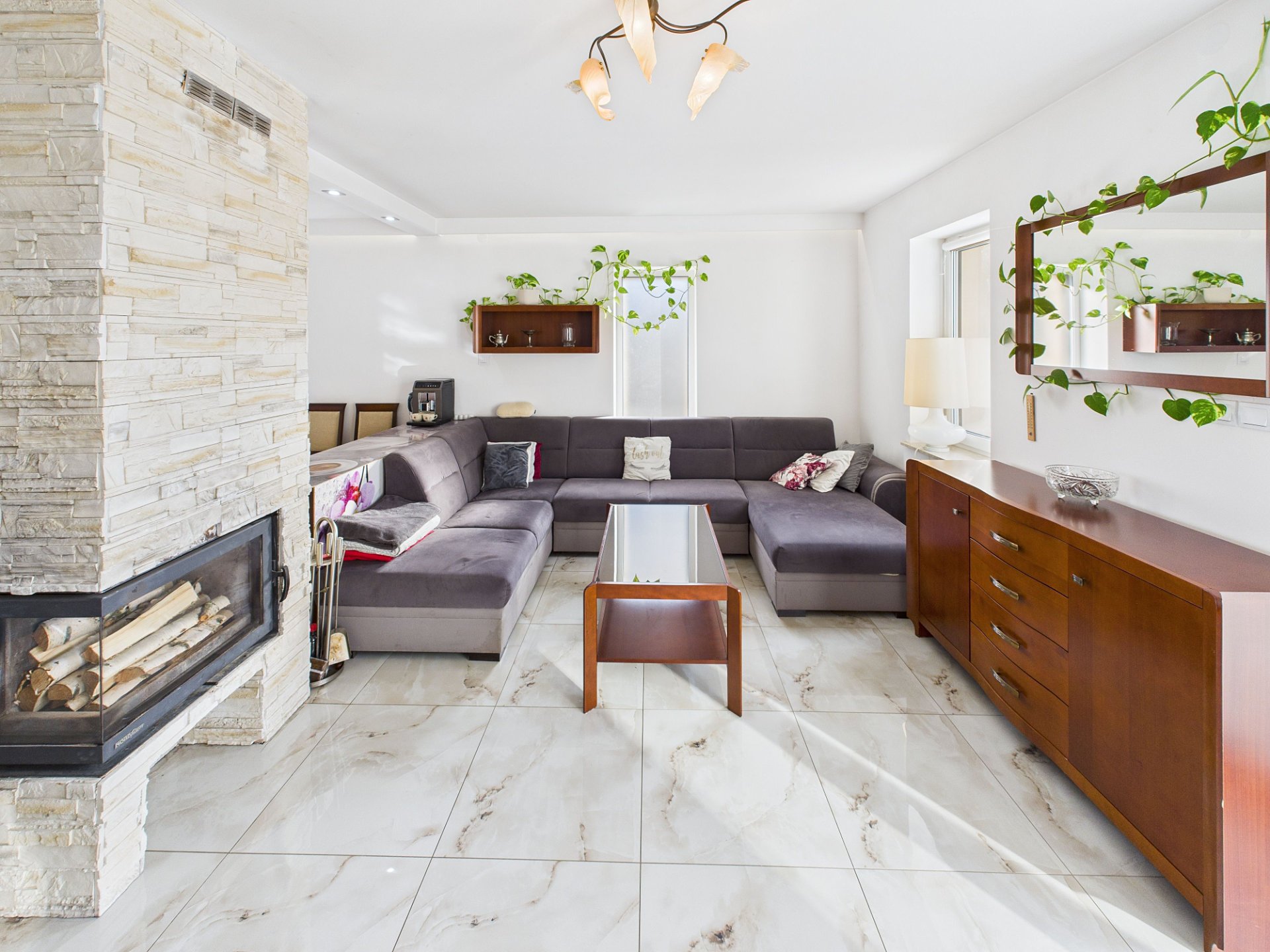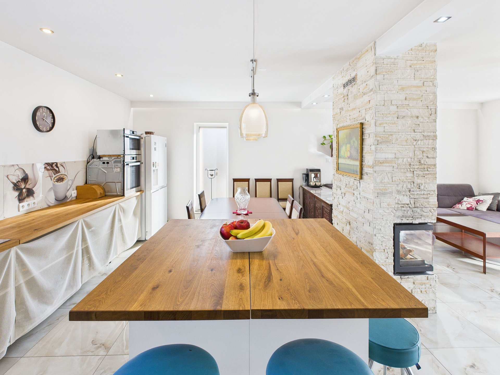 - jasny salon połączony z kuchnią w aneksie – serce domu