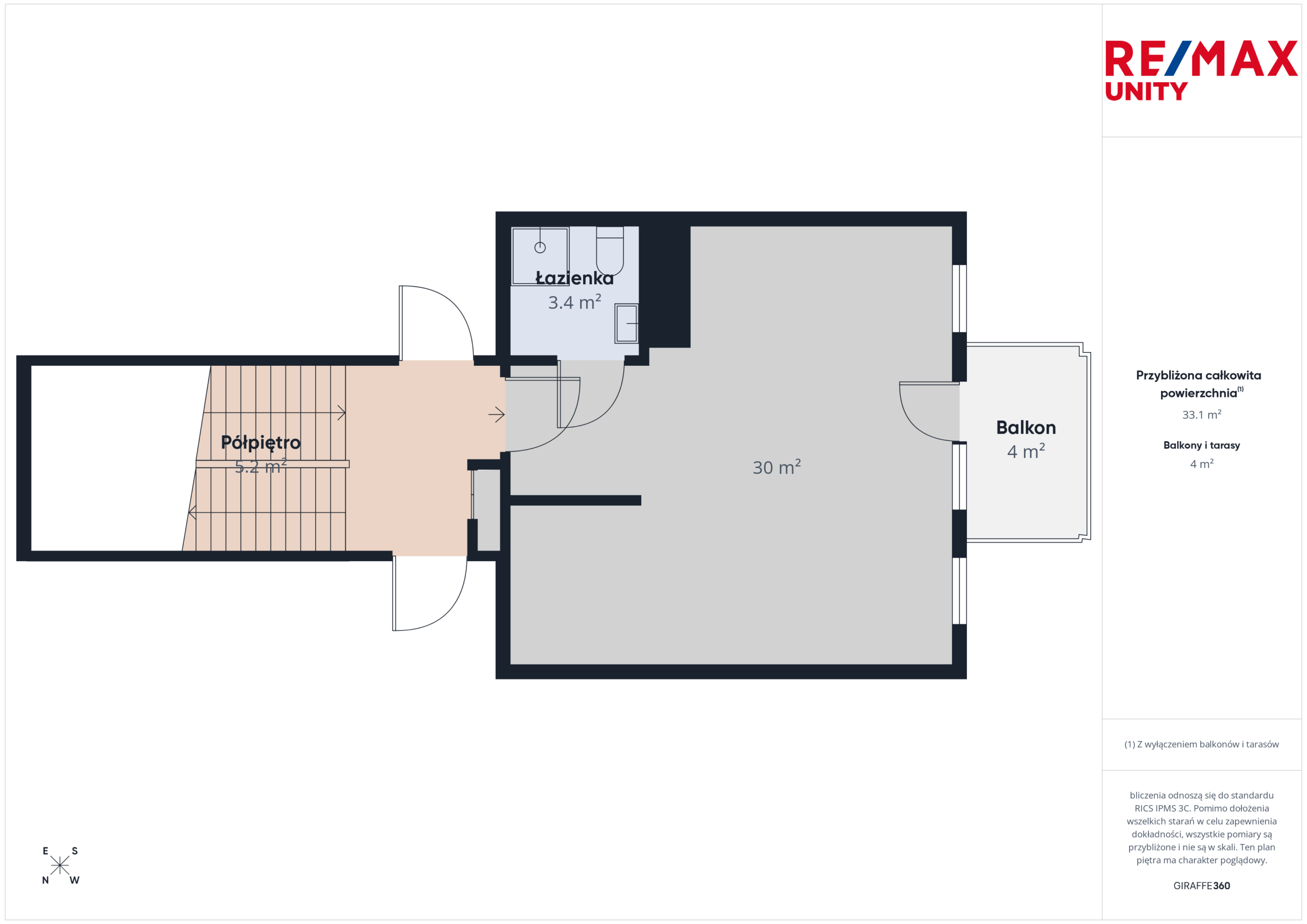 Mieszkanie ma 33 m² i składa się z: