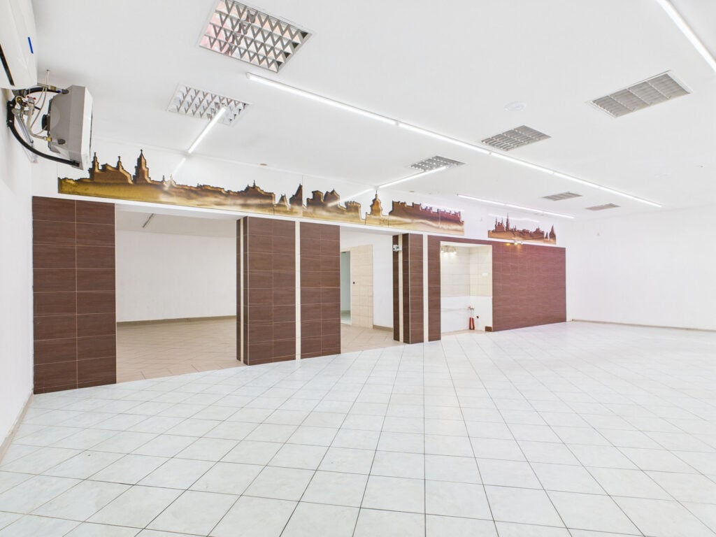 Duża, jasna, świetnie widoczna z ulicy dzięki witrynom.