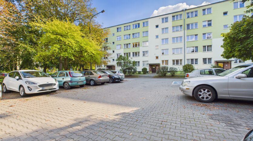 Blok z 1975 roku, czteropiętrowy, po termomodernizacji (ok. 10 lat temu). Czysta, zadbana klatka schodowa i monitoring zwiększają poczucie bezpieczeństwa. Przed budynkiem znajduje się wiele miejsc parkingowych wyłącznie dla mieszkańców.