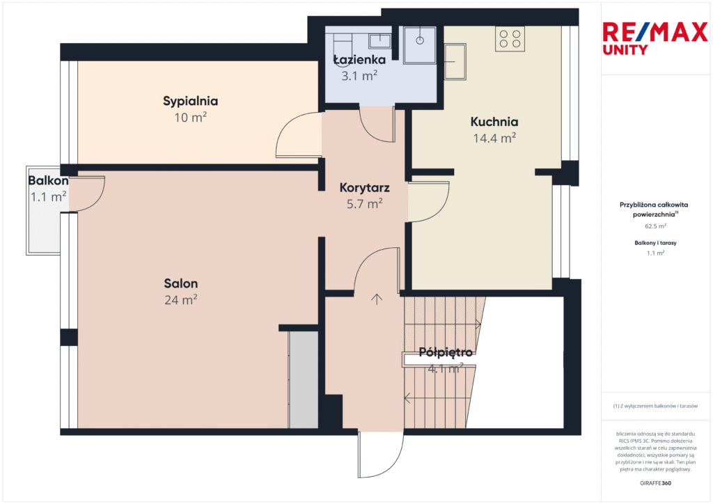 🌅 Balkon: 1,2 m² – idealny na poranną kawę