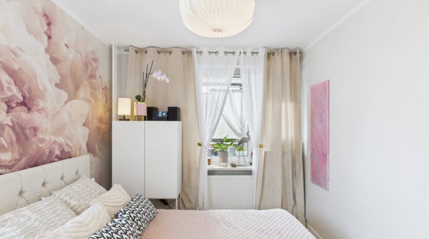 Dwie sypialnie po 12 m² każda. Jedna urządzona z nutą romantyzmu i pastelowej lekkości 🌸, druga z klimatem natury – ściana z motywem lasu przenosi myśli w spokojne rejony, gdzie łatwo się wyciszyć i nabrać energii.