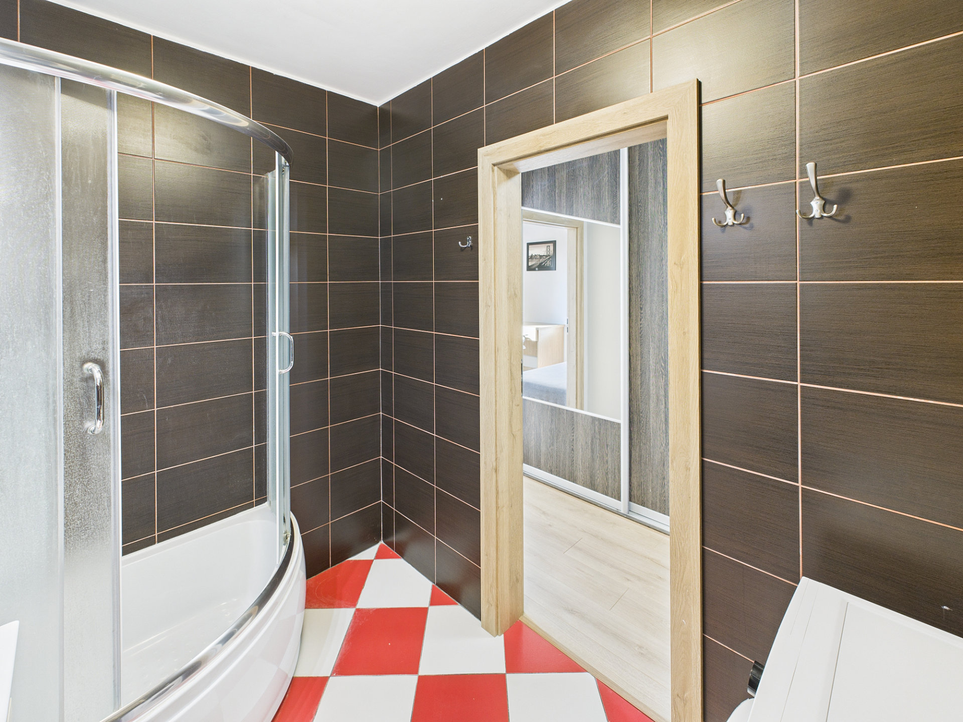 🔹 Łazienka (ok. 4,7 m²) jest funkcjonalna i czysta, wyposażona w prysznic z brodzikiem, umywalkę, lustro, toaletę oraz pralkę – gotowa do codziennego użytku.