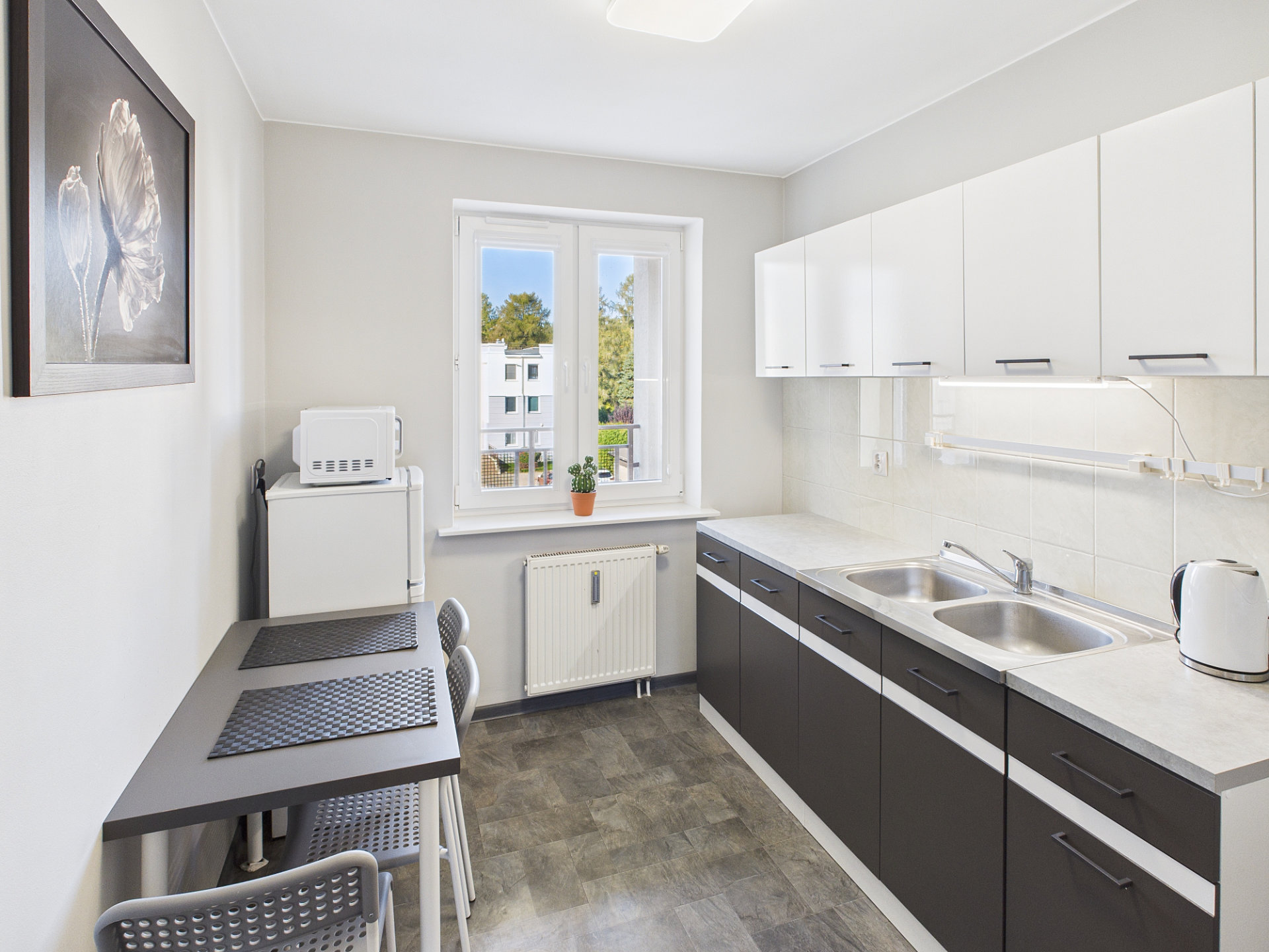 Do mieszkania przynależy miejsce parkingowe za szlabanem, otwieranym na pilot – to niezwykle wygodne, szczególnie w centrum miasta. W mieszkaniu znajdziesz także odkurzacz, komplet naczyń, sztućców, talerzy i szklanek – wszystko, czego potrzebujesz do komfortowego startu bez dodatkowych wydatków.