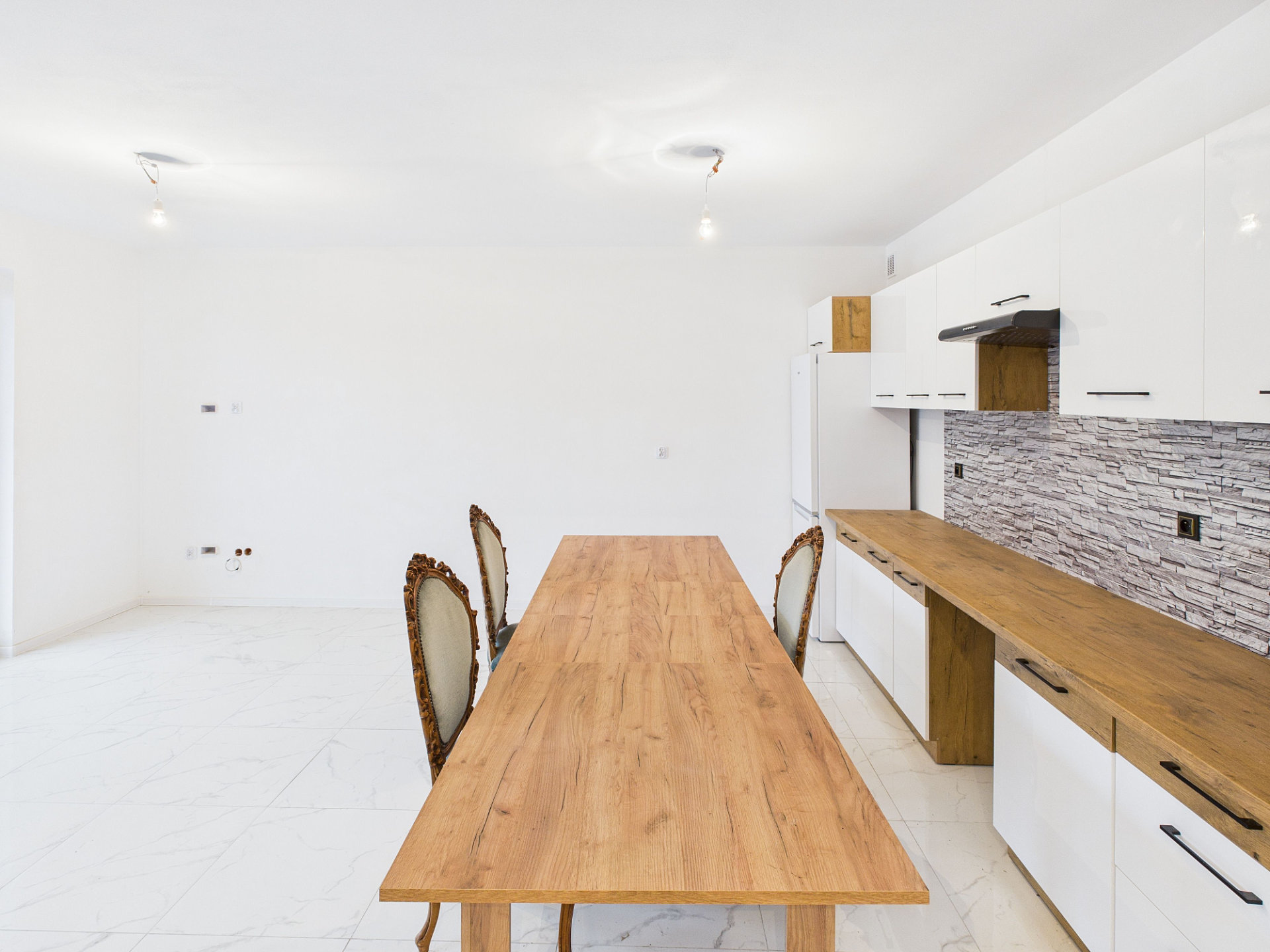 - Kuchnia: zabudowa meblowa + duży drewniany stół – idealny na wspólne posiłki, pracę czy spotkania ze znajomymi 🍽️