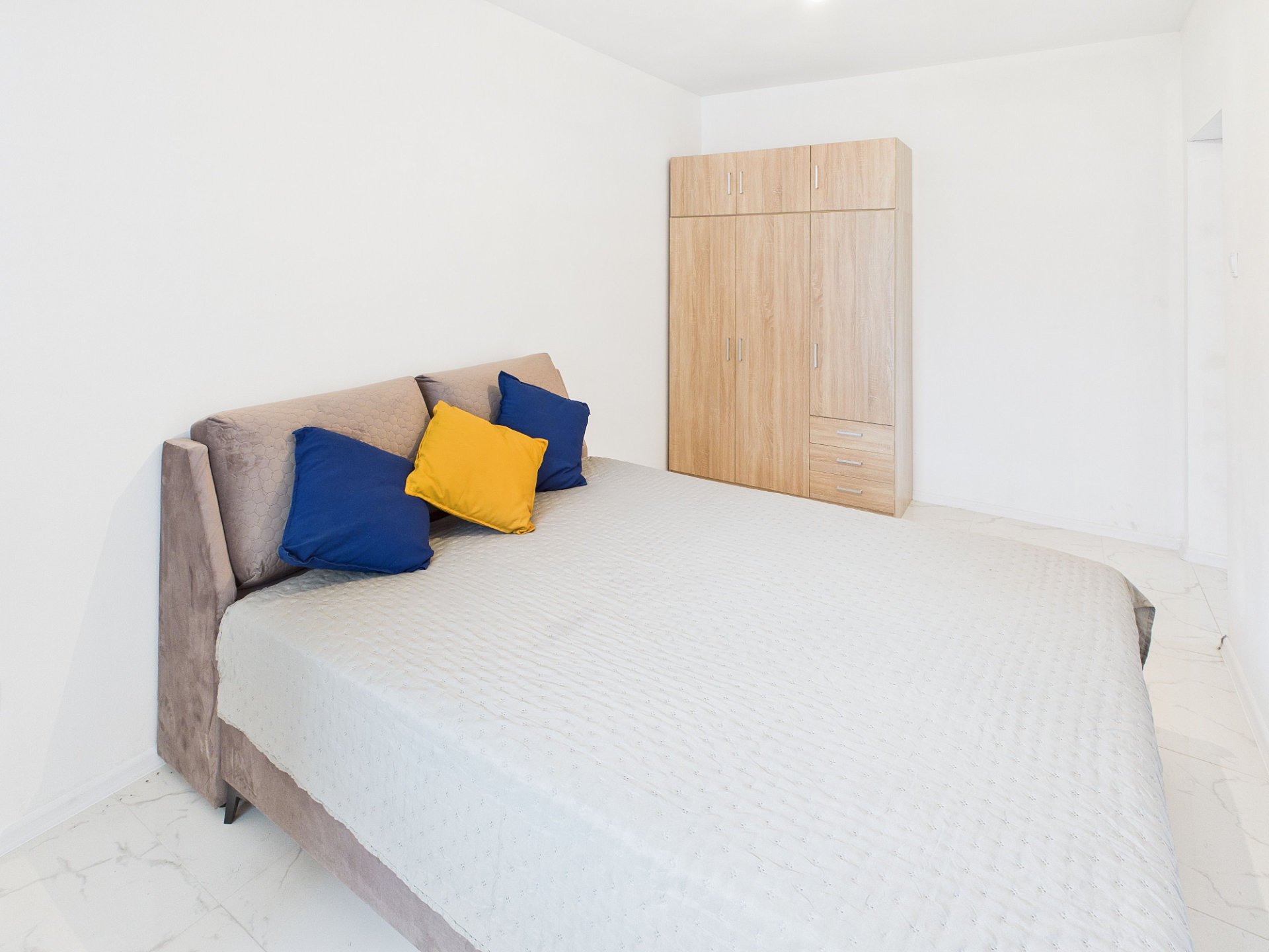 Osobna sypialnia daje prywatność i komfort – idealna i dla pary, i dla singla, który lubi mieć wyraźny podział na „strefę dzienną” i „nocną”.