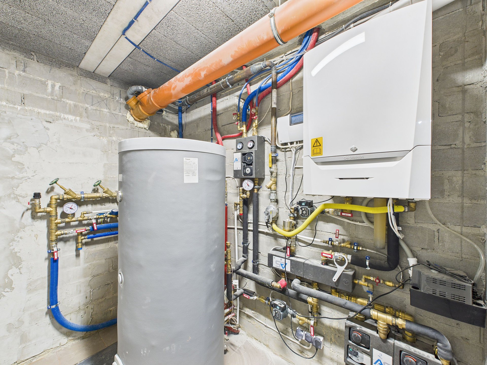 - ogrzewanie podłogowe z pieca gazowego we wspólnej kotłowni dla całego budynku